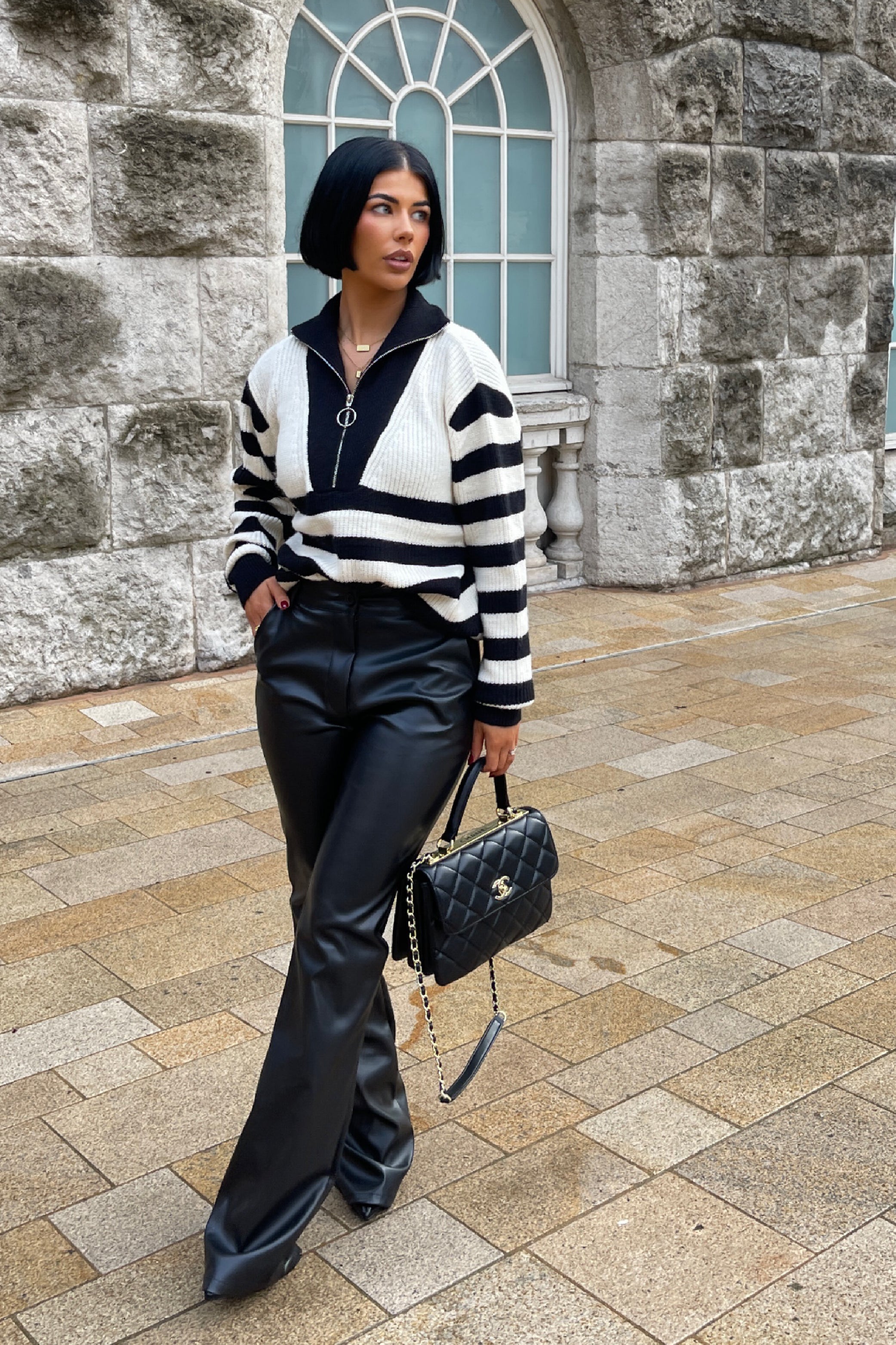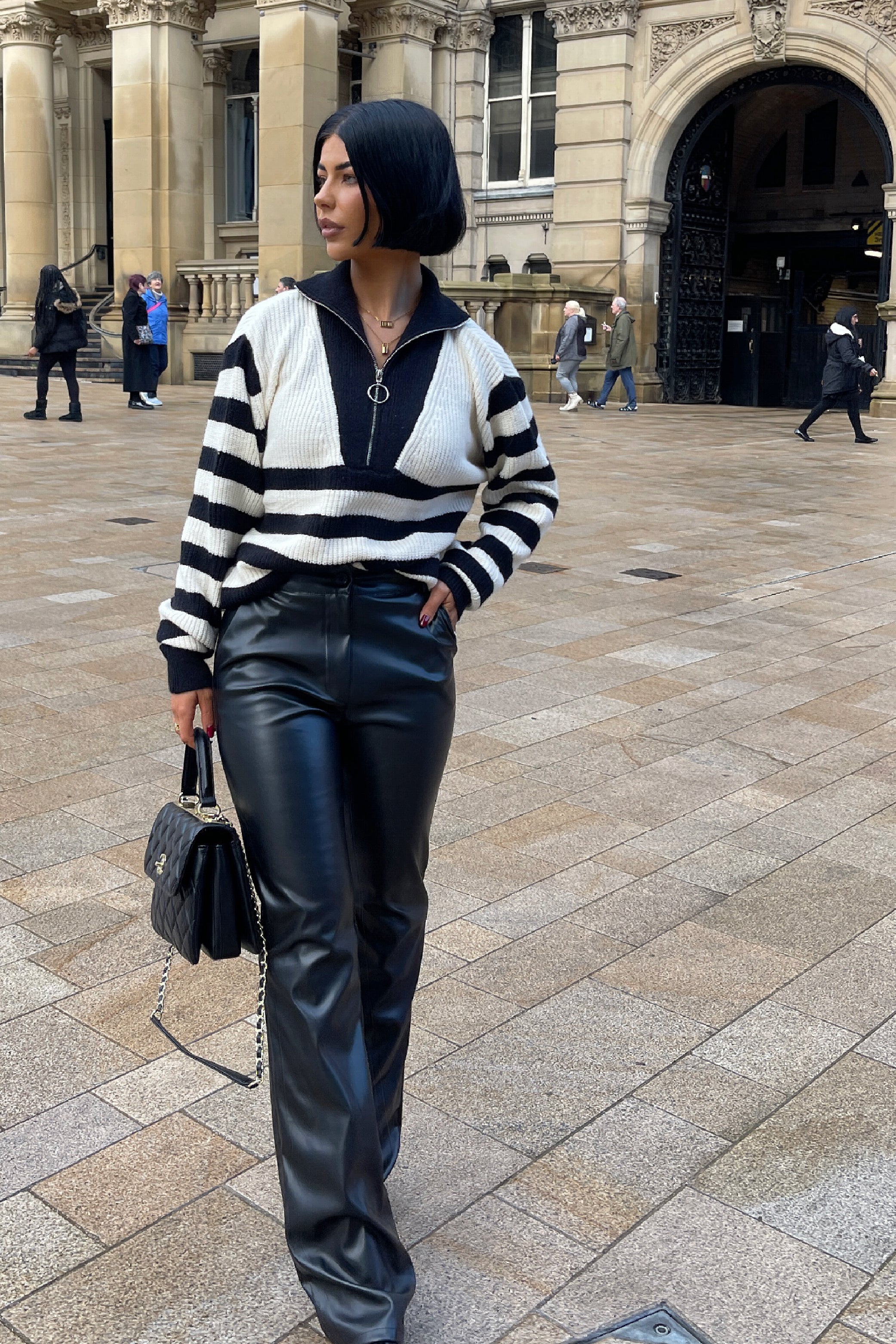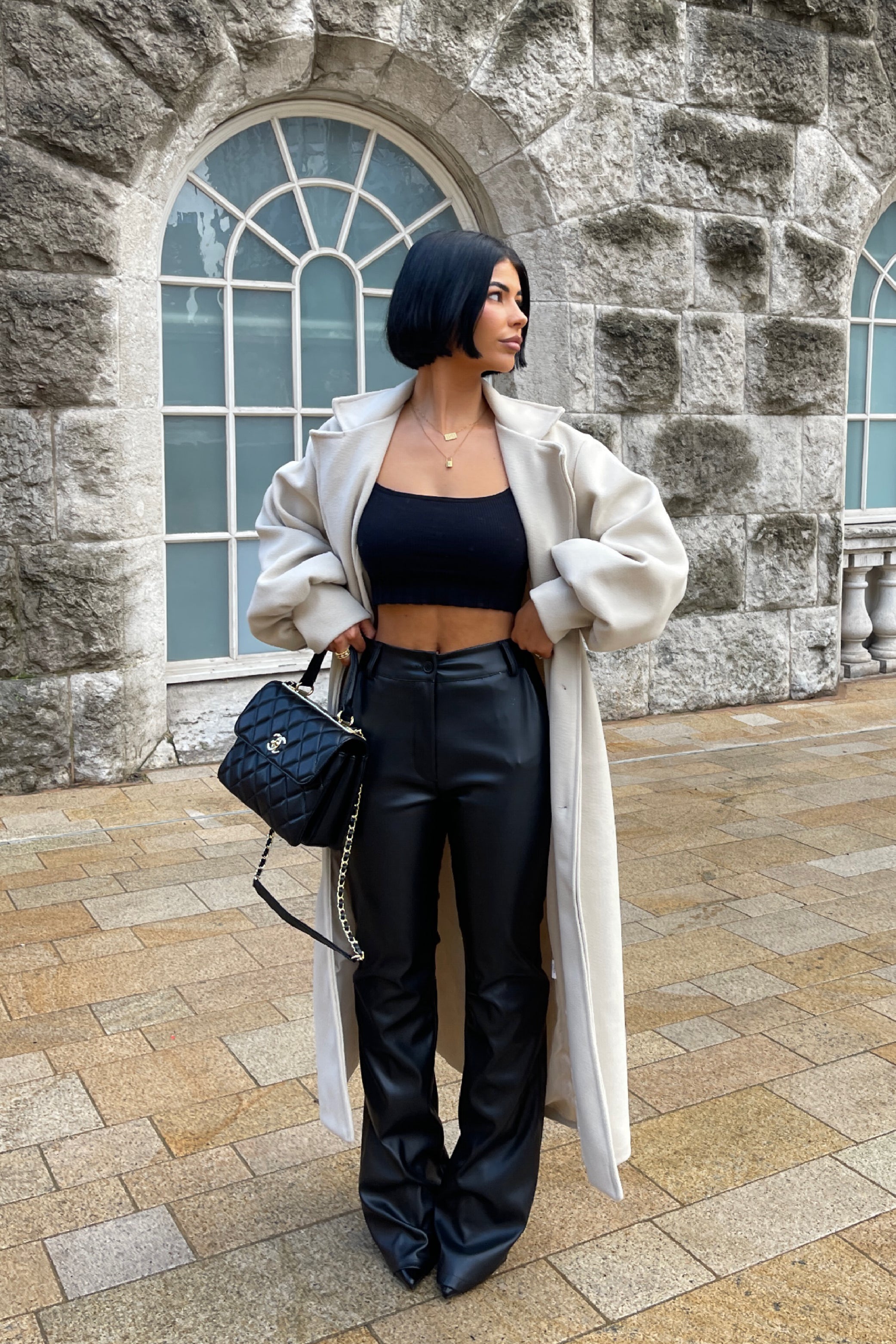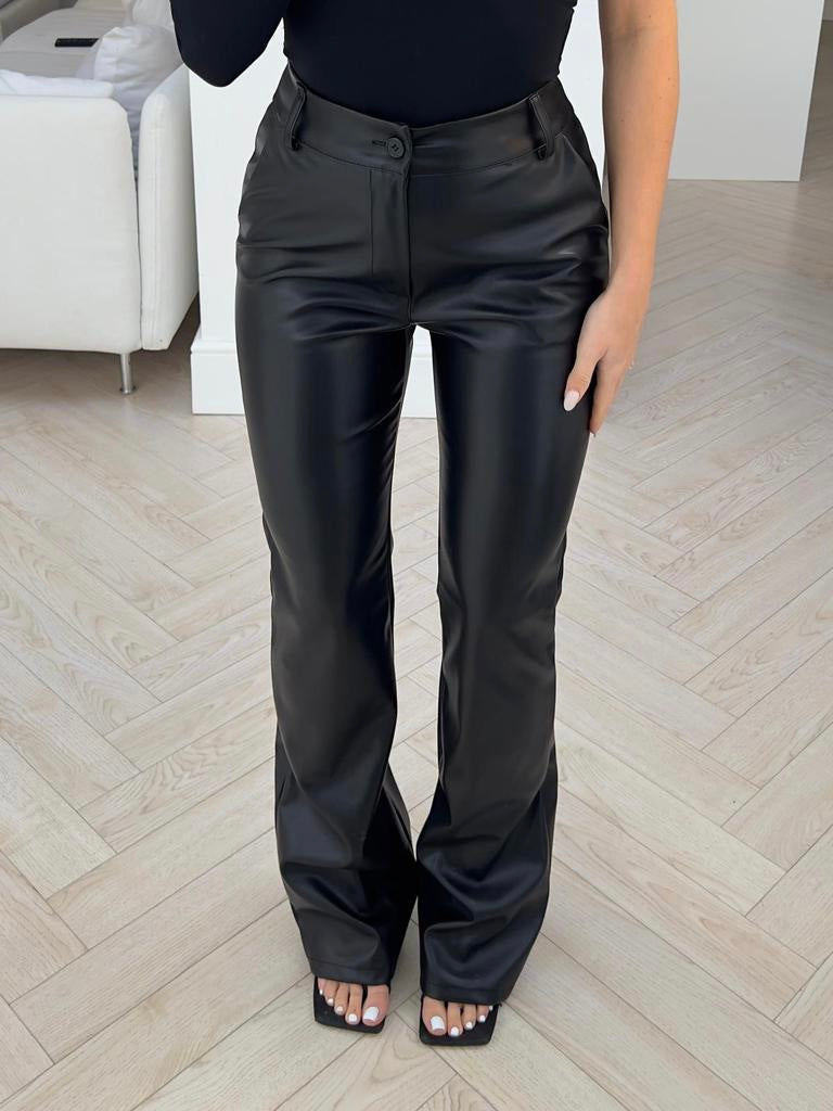 Introducing Larnie, the ultimate staple piece for your wardrobe. These black faux leather straight leg trousers are made with premium material, providing a slight stretch for added comfort. Dress them up or down for any occasion!