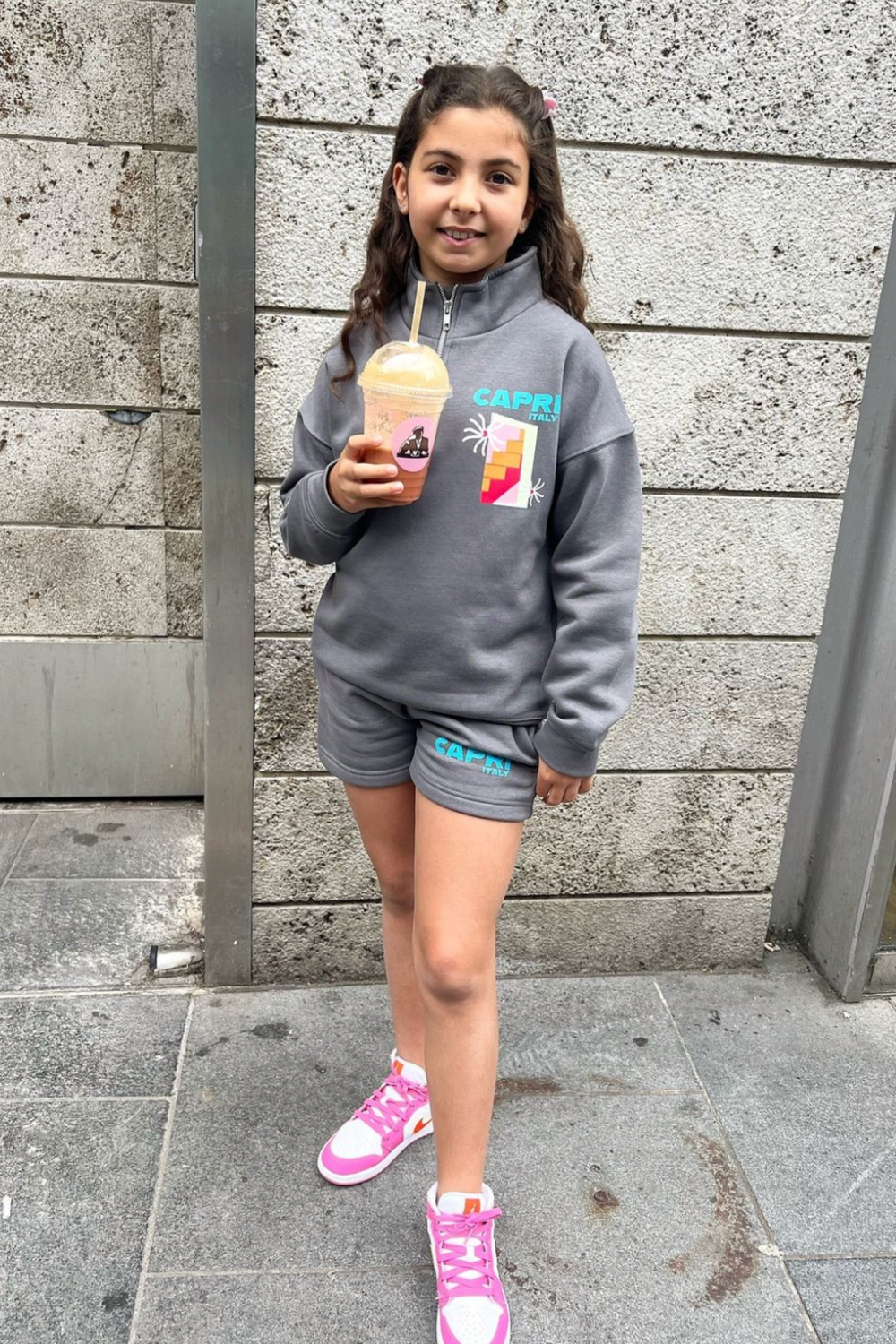 This relaxed-fit sweater features dropped shoulders, a ribbed crew neck and cuffs, and is printed with our in house design. Paired with matching drawstring shorts. Shop our adults lounge range and find the adults version to match with your mini!