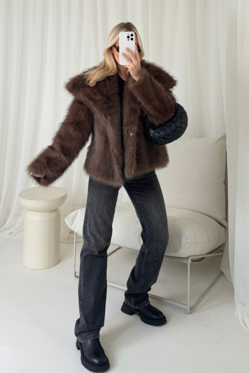 This Olivia faux fur coat is an excellent choice for chilly autumn days. Keep warm and look chic with this stylish, flattering jacket. The fur exterior is super soft and adds cozy comfort to any outfit. Perfect for fashionable outdoor looks this season.