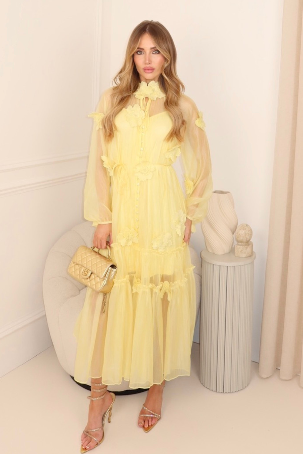 Expertly designed in vibrant colours this maxi dress is perfect for a fun and stylish summer look. The chiffon fabric and tiered design create a boho feel while the floral embroidered detail embellishments add a touch of fun. Perfect for any occasion, this dress is a must-have for your wardrobe.