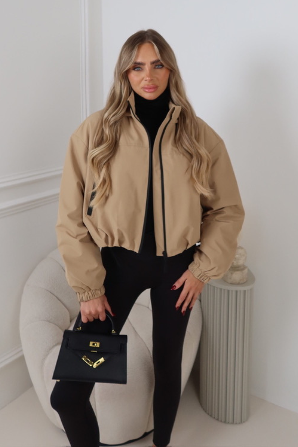 The cropped hooded drawstring jacket is the perfect mix of sporty and street-ready style. Designed with a relaxed fit and adjustable drawstrings, it lets you customize your look and comfort. The cropped length gives it a modern edge, while the zip pockets add a functional touch for keeping your essentials close. Lightweight yet structured.