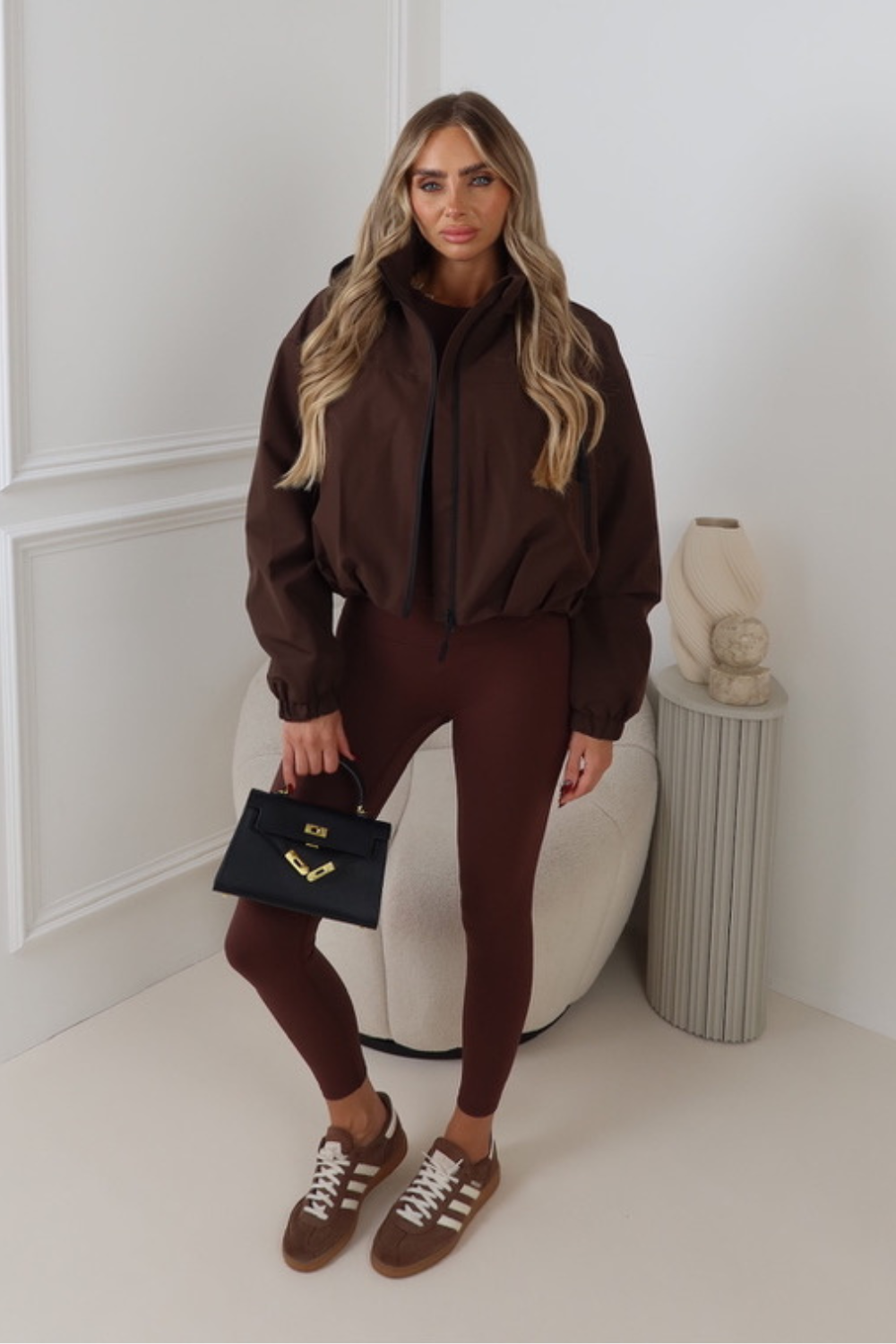 REMI CHOCOLATE CROPPED HOODED DRAWSTRING JACKET