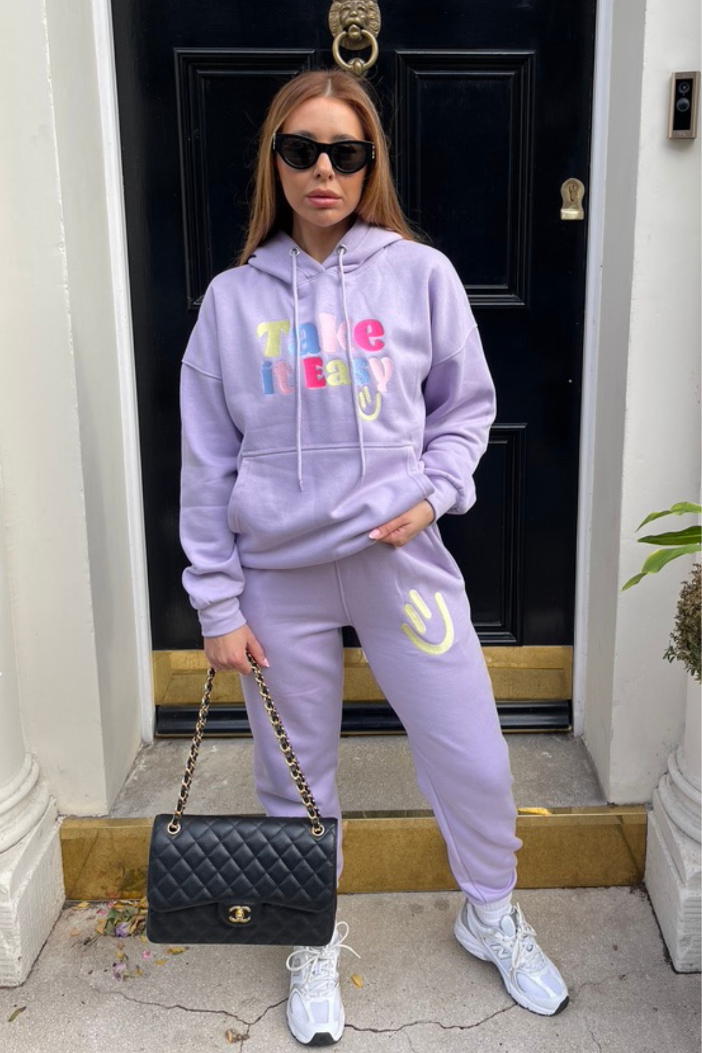 Featuring a soft-touch lilac material hoodie with our self love embroidered design , matching elasticated drawstring joggers that are also embroidered with the same design, both the hoodie and joggers are made from the same stunning material, pair this with a pair of fresh chunky trainers for a complete look.